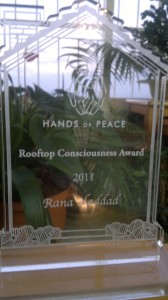 At this year’s Annual Farewell Dinner on 27 July 2011, Hands of Peace gave away a “Rooftop Consciousness Award” in honor and memory of their friend and devoted Board member, Ron Miller. Click HERE to read the post about the Farewell Dinner at Hands of Peace. There were two recipients of the award: an Arab-Israeli named Rana Haddad and an American named Kimberly Marshall. Both are extremely impressive individuals and very deserving of this honor, as is explained in detail in the link to the text below. Congratulations to Rana and Kimberly! Ron would be ecstatic.